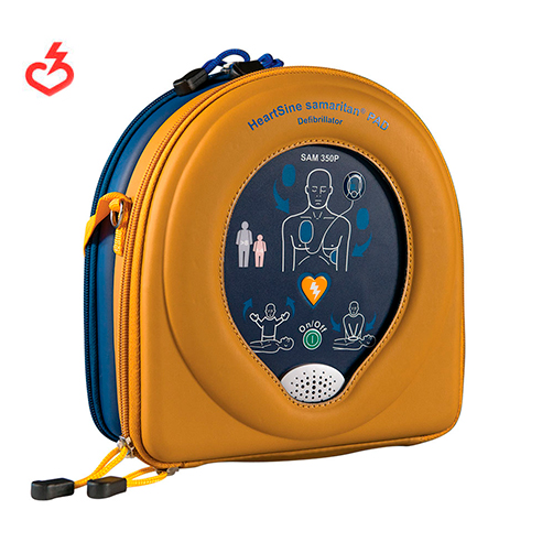 Bolso de transporte amarillo, Pad-Pak adulto (parche y batería en una sola pieza), kit de primeros auxilios y cable de datos USB. |
